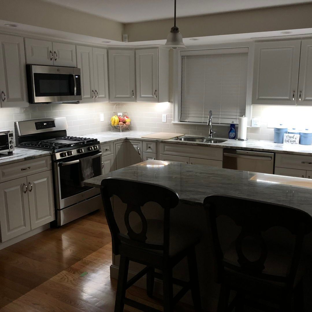 TF Renovations installs under cabinet lighting with precise placement and safe electrical connections done by licensed electricians, creating bright, clean illumination for everyday cooking and prep.